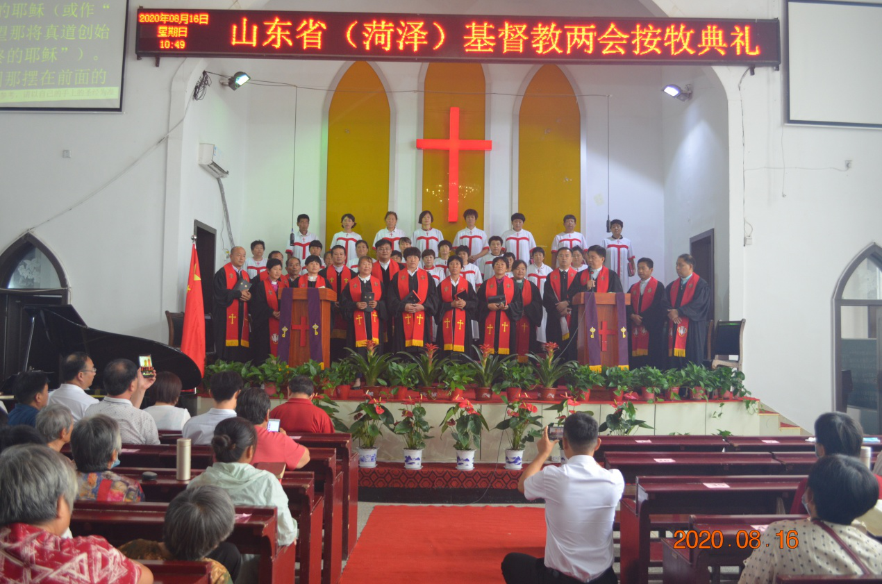 2020年8月16日上午,山东省基督教两会在单县基督教中心堂举行圣职按立典礼。