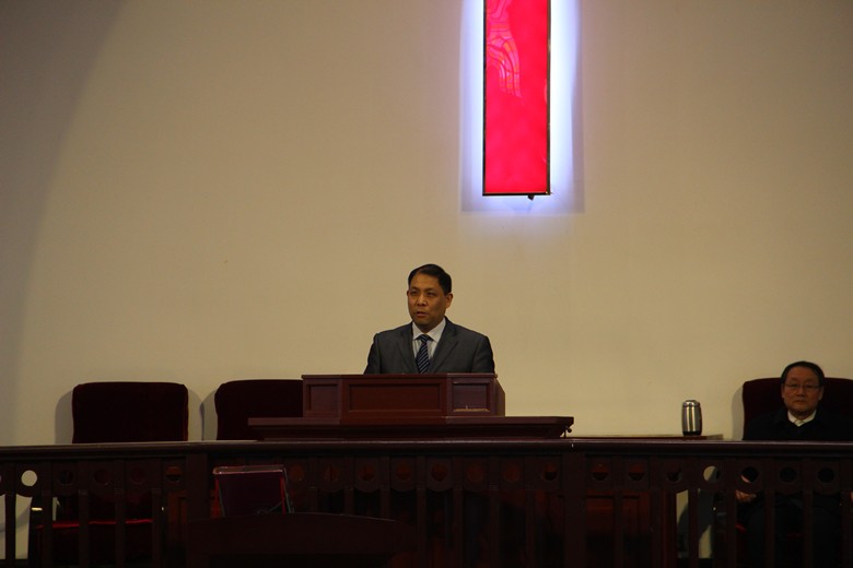 李牧师还特别强调:山东省基督教两会与济南基督教两会在王神荫主教等老一辈的带领下,两者的关系已经打下了良好的基础,奠定了爱的根基。今后的侍奉,避讳蒙上帝更大的赐福。尤其是山东神学院面临着新校区的建设,这关乎着下一代福音广传的使命,关乎着薪火相传的使命。济南市基督教两会以及经四路教堂的全体信徒,必定会一如既往的全力以赴支持神学院的各项事工。整场聚会自始至终在爱的传递中彰显着上帝的荣耀。